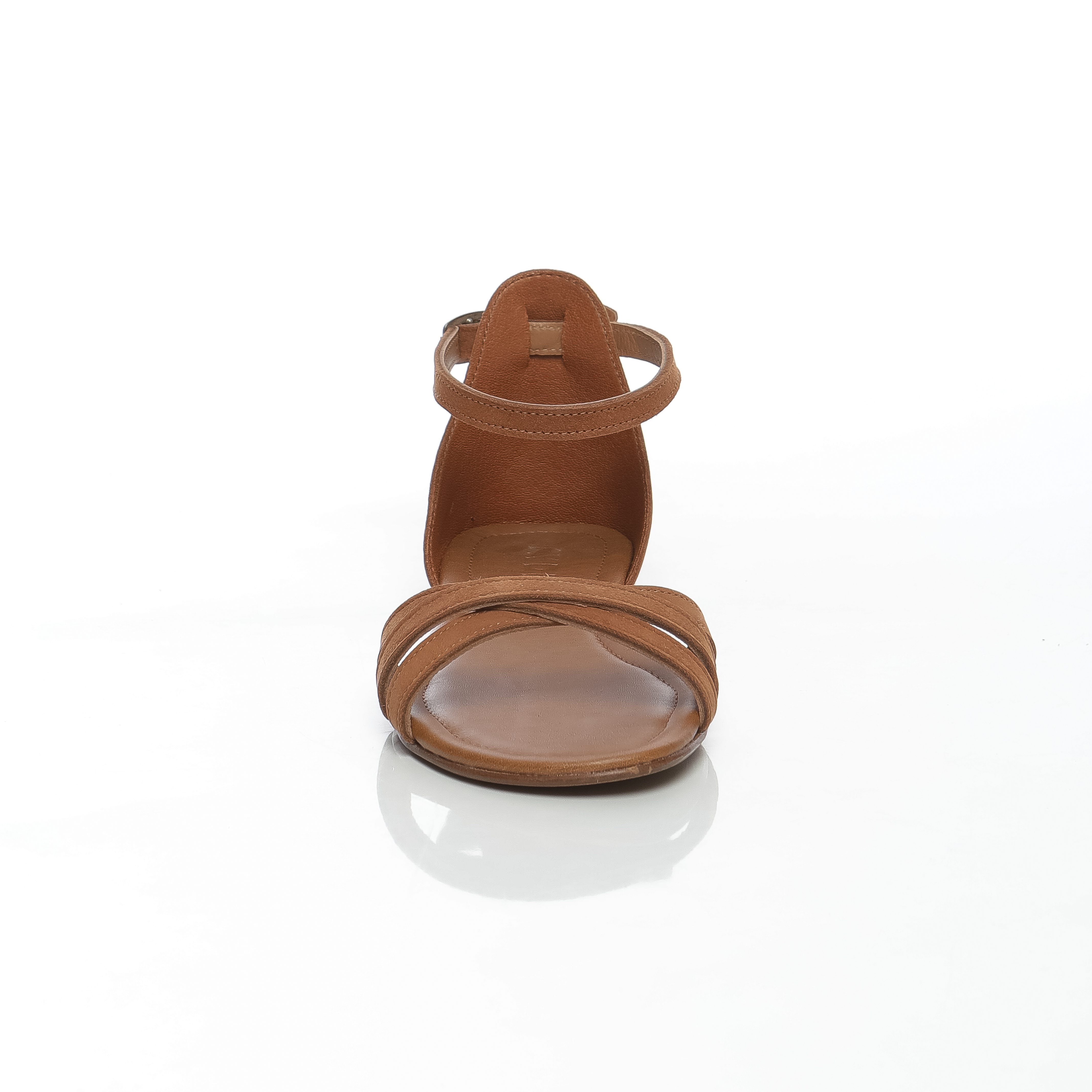 Plongez dans l’élégance absolue de cette sandale féminine en cuir. Son dessus dévoile un spectacle captivant de brides en cuir brillant, tissant un ballet harmonieux avec des lanières en cuir lisse.